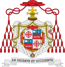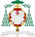 Coat of arms of His Beatitude Fouad Twal, Patriarch Emeritus, charged with the red Jerusalem cross, associated with the order.