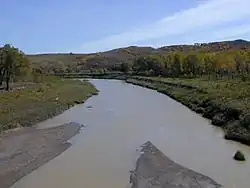 The Grand River (Lakota: Čhaŋšúška Wakpá[4]) is a tributary of the Missouri River in South Dakota in the United States. The length of the combined branch is 110 mi (177 km). With its longest fork, its length is approximately 200 mi (320 km).