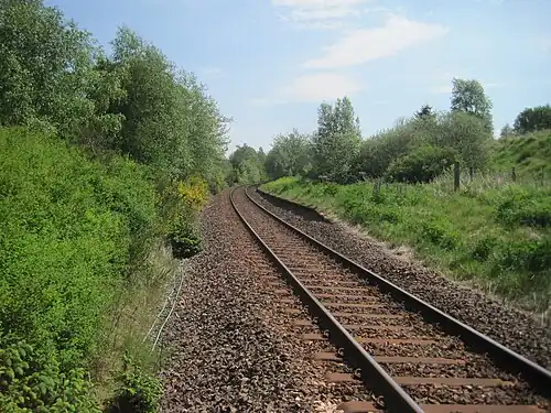 On 30 July 1859 the Banff, Portsoy and Strathisla Railway opened a 16+14 miles (26.2 km) line from Grange to Banff and a 3+14 miles (5.2 km) branch from Tillynaught to Portsoy. The GNoSR took over services on 1 February 1863, and the railway renamed the Banffshire Railway. An extension to Portgordon was authorised, but this was abandoned in 1867 and the Banffshire absorbed by the GNoSR.[6] The line to Portgordon was later revived and extended along the Moray Firth coast to Elgin, and this opened on 1 May 1886. A curve was opened at the junction to allow Aberdeen trains direct access to the Coast Line without reversing at the station.[7]