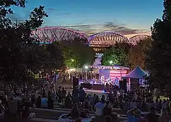 Grateville Dead Fest is an outdoor music and arts festival in Louisville, Kentucky catering to fans of the band Grateful Dead at the Brown Forman Amphitheater in Waterfront Park, overlooking the scenic Ohio River and boat docks.[1] The festival typically includes two-to three days of jam band music by regional artists from the Kentucky, Tennessee and Ohio areas.[2] The venue includes food and beverage vendors, folk art vendors, local breweries and typically supports some cause[3] each year to which a portion of the proceeds are donated.[4] The event also supports the Waterfront Development Corporation and City of Louisville.