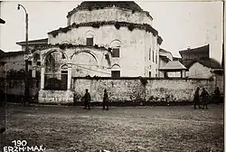 It was built in 1931 under the Kingdomship of King Ahmed Zogu on the site of an older mosque from Ottoman times. By the day of its opening, it was the largest mosque in Albania. The architects were Italian as the result of an Italian-Albanian cooperation.[2] The goal of the architecture of the building was to have influence from Islamic tradition while also incorporating Durrës-style columns.[3] When the mosque was completed, there was a celebration which included many foreign delegations.[4] The mosque was closed in 1967 under the dictatorship of Enver Hoxha and its minaret was torn down. Most other historic mosques of the Ottoman era were destroyed.[1] From now on, the Main mosque was used as a so-called Youth Centre. It was damaged again in 1979 by an earthquake.