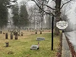 Old Great Plain Schoolhouse, Great Plain Union Chapel, Great Plain Cemetery, and aerial view | |