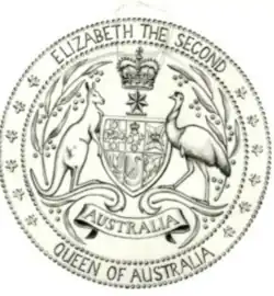 - ^ "Authorises Use Of New Great Seal". Morning Bulletin. No. 29, 496. Queensland, Australia. 17 February 1954. p. 4. Retrieved 7 September 2023 – via National Library of Australia.