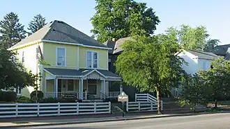 Greenfield Residential Historic District is a national historic district located at Greenfield, Hancock County, Indiana. The district encompasses 523 contributing buildings, 1 contributing site, and 15 contributing structures in a predominantly residential section of Greenfield. It developed between about 1880 and 1947, and includes notable examples of Greek Revival, Gothic Revival, Italianate, Queen Anne, Colonial Revival, Neoclassical, Mission Revival, and Bungalow / American Craftsman style architecture. Located in the district are the separately listed Charles Barr House and James Whitcomb Riley House. Other notable buildings are St. Michael's Catholic Church (1898), Shiloh Primitive Baptist Church (c. 1900), Chair Factory (c. 1880), Friends Meeting House (c. 1890), and two Lustron houses (c. 1947).[2]