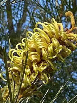 Grevillea hodgei, commonly known as the Coochin Hills grevillea,[4] is a species of flowering plant in the family Proteaceae and is endemic to a restricted area of Queensland. It is an erect shrub with deeply divided leaves with erect, linear leaflets, and clusters of hairy, cream-coloured flowers.