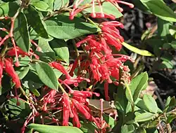 Grevillea rhyolitica, commonly known as Deua grevillea or Deua flame,[2] is a species of flowering plant in the family Proteaceae and is endemic to south-eastern New South Wales. It is a more or less erect shrub with elliptic leaves and hairy red flowers.