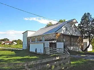 The complex consists of the one-and-one-half-story, stuccoed, sandstone mill, which was erected in 1843, a two-and-one-half-story, stucco over stone farmhouse that was built sometime around 1830, a one-and-one-half-story, stucco over stone, brick and frame summer kitchen that was erected sometime around 1830, a stone and frame barn that was built circa 1850, two small barns that were built circa 1900, a wagon shed and corn crib that were erected sometime around 1920, and a frame garage that was built sometime around 1920.[2]