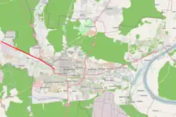 Grunwaldzka street is mentioned on an 1855 address book of Bromberg,[1] but appears as early as 1827 as a path to Nakło nad Notecią.[2] On an 1857 map, then on an 1876 city map the axis is mentioned as a Berliner Chaussee[3] or Highway to Berlin. At that time, it appears as an extension of the Berliner Straße (today's Swiętej Trojcy street) to the west. In 1851, the railway from Berlin to Kaliningrad -via Bromberg- was built along that path. In 1895, a narrow-gauge railway track from Bydgoszcz to Koronowo was laid, with a station on Grunwaldzka street, Bydgoszcz Wąskotorowa, linked to the city tram network in 1898. The railway did not survive WWII and is now operated for touristic purposes between two villages west of Nakło: railtracks on Grunwaldzka were pulled part in 1969. The tramway line in the street was dismantled in 1984.[4]