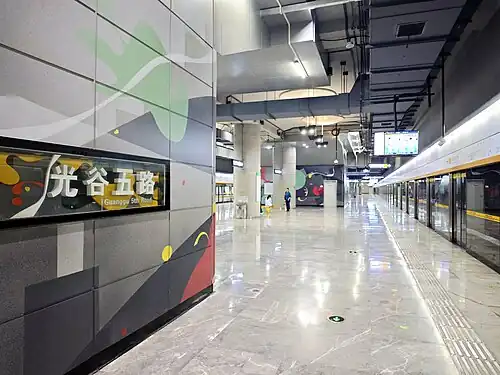 Guanggu 5th Road Station (Chinese: 光谷五路站), is a station on Line 11 and Line 19 of the Wuhan Metro. It entered revenue service on October 1, 2018. It is located in Hongshan District.[1][2]