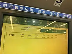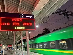 - ^ a b c d e f g 广铁集团深圳火车站. "【10月5日深圳地区车站往这些方向仍有余票】". m.weibo.cn (in Chinese). Archived from the original on 4 September 2024. Retrieved 4 September 2024.