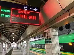 - ^ "6月20日起,广州东站新增深圳北方向动车组". 广州日报·新花城 (in Chinese). 18 June 2022. Archived from the original on 27 September 2024. Retrieved 27 September 2024 – via huacheng.gz-cmc.com.