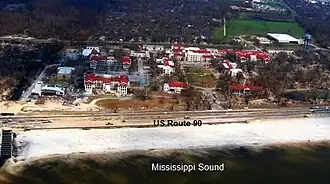 Gulfport Veterans Administration Medical Center Historic District, also known as Centennial Plaza, is a 48-acre (19 ha) compound located in Gulfport, Mississippi.[3] The facility operated as a medical center under the Veterans Administration from the 1920s until 2005, when damage from Hurricane Katrina resulted in its closure.[4] The property was designated a Mississippi Landmark in 2010 and was added to the National Register of Historic Places in 2014.