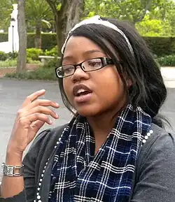 During this period, Ngwenya led DASO's opposition to the University of Cape Town's prevailing policy of affirmative action in admissions, which used race as the sole proxy for disadvantage.[5] She preferred a means-tested admissions policy, believing the prevailing policy to favour "an elite class of beneficiaries" and to relegate black students to a "status of perpetual victim".[1] According to Geordin Hill-Lewis, who was Ngwenya's colleague in DASO, Ngwenya "pretty much single-handedly" drafted an alternative admissions policy that considered socioeconomic measures and that was substantially incorporated into UCT's actual policy.[3] She left the university in 2012 with a bachelor's degree in classical studies and law.[1][6]