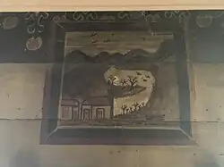 The Chesser-Williams House is a preserved home from the 1850s that was moved from its original location to sit adjacent to the museum.[34] The house is an antebellum[35] house made of heart pine[36] in an I-house style. It is unknown who built the house, but it was owned and lived in by American Civil War veteran Benjamin Chesser in the 1870s,[37] who had served Georgia in the American Civil War as part of Company D of Georgia's 9th Artillery Battalion, known as the "Gwinnett Artillery".[38] Chesser was living in the house when an unknown itinerant German painter traveling from Texas to North Carolina painted scenic folk art on the interior and exterior of the home in exchange for room and board.[36] The scenic painting-style folk art can be found inside the home in places such as the overmantel.[39]