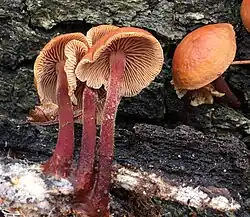 Gymnopus spongiosus, commonly known as the hairy-stalked collybia, is a species of the mushroom-forming fungus family Omphalotaceae.[2] In North America, The fruiting body appears between late summer and fall, and winter along the Gulf Coast.[3] It also appears infrequently in South America.[4] Gymnopus spongiosus is not considered an edible mushroom.