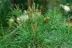 Gymnostoma australianum, commonly known as the Daintree pine or Daintree oak, is a species of small tree which is endemic to a restricted area of the Daintree tropical rainforests region, within the Wet Tropics of north-eastern Queensland, Australia.[2][4][5][6] It is a member of the plant family Casuarinaceae, often named she-oaks, members of which are characterised by drooping equisetoid (meaning "to look like Equisetum") evergreen foliage, and separate male and female flowers (unisexual).[2] Superficially they look like well known scale–leaved gymnosperm trees species, such as Cupressus in the northern hemisphere and Callitris in the southern hemisphere.