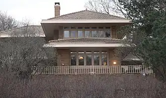 The H.H. Everist House is a historic building located in Sioux City, Iowa, United States. Everist was the founder of L. G. Everist Inc. and Western Contracting Corporation. He had local architect William L. Steele design this Prairie School-style house. It is considered the finest example of Steele's residential designs in this style.[2] M.N. Hegg built the house from 1916 to 1917, and he completed the drive in garage and landscaping in 1920. The irregular plan of the structure is executed on three levels. It features a horizontal emphasis with bands of windows. Decorative terra cotta bands are used as belt courses, chimney parapets, coping and trim work. The house is capped with multiple broad, tiled, overhanging hipped roofs. It was listed on the National Register of Historic Places in 1983.[1]
