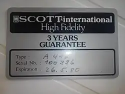 In 1977 Scott amplifiers made in the USA were sold in Switzerland and came with an astonishing (for the time) 3 year guarantee. This was certified with a credit card shaped plastic guarantee card which was really unique back then.