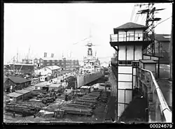 By 1918, New Zealand carried two aircraft, a Sopwith Pup and a Sopwith 1½ Strutter, on flying-off ramps fitted on top of 'P' and 'Q' turrets.[8] The Pup was intended to shoot down Zeppelins while the 1½ Strutter was used for spotting and reconnaissance.[16] Each platform had a canvas hangar to protect the aircraft during inclement weather.[17]