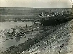 New Zealand was launched on 1 July 1911 in front of 8,000 onlookers by Lady Theresa Ward, the wife of Sir Joseph Ward, using a bottle of New Zealand wine for the christening.[36][4][37] Following her launch New Zealand was moved by the Clyde Shipping Company's tugs Flying Linnet and Flying Swallow to the shipyard's fitting out basin, for installation of the boilers, engines, and auxiliary machinery though temporary openings in the main deck before the superstructure and armament was installed.[38]