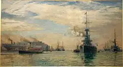 To signal her upcoming completion the New Zealand government commissioned the marine artist William Lionel Wyllie to produce a painting of New Zealand which he titled Tower House', Portsmouth [HMS "New Zealand" fitting out].[46] In subsequent years he also produced other paintings of the ship.