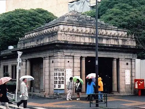 3. ^ "「旧博物館動物園駅」駅舎が、「東京都選定歴史的建造物」に選定されました 〜鉄道施設として初めての選定〜" [The Former Hakubutsukan-Doubutsuen Station Station Building Was Selected as a Historic Building Selected by the Tokyo Metropolitan Government -First Selection as a Railway Facility-] (PDF) (Press release) (in Japanese). Keisei Electric Railway. 2018-04-19. Archived from the original (PDF) on 2019-01-20. Retrieved 2020-05-02.