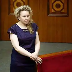 In October 2012, she was elected as a People's Deputy of Ukraine from Svoboda's proportional list.