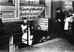 On the day the strike ended, violent clashes broke out, particularly in Hamburg's Neustadt district. Strike breakers fired shots from revolvers, provoking thousands of people to gather at Schaarmarkt. They engaged in street battles with the advancing police. The police broke up the crowd with armed force, and the number of people injured in these clashes was estimated at 150. Similar riots broke out in the following days. Under the impression of this open violence, a large number of strikebreakers fled the city. This increased the chances of the strikers being rehired.[10]