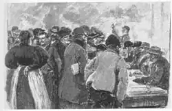 At the end of January 1897, the strike leadership therefore advised an unconditional end to the industrial action. 72 percent of those eligible to vote rejected this proposal in a ballot on January 30, 1897. It was not until a week later, when the strike had reached its peak after eleven weeks with 16,960 strike pay recipients, that a majority of 66 percent of those voting decided to end the strike unconditionally and immediately.[10]