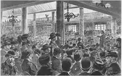 The tense situation was exacerbated by the arrest and expulsion of the English dockworkers' leader Tom Mann, who was also well known in Germany and had wanted to promote the unionisation of dockworkers in Hamburg and Altona in mid-September 1896. Adolph von Elm, a Hamburg trade union leader and member of the Reichstag who was supposed to translate Mann's speech, stepped in as a speaker and reported on the arrest. This measure, initiated by Hamburg's police senator Gerhard Hachmann, was also widely regarded among the unorganised dockworkers as an unacceptable and insulting restriction of freedom of association. As a result, the expulsion had the opposite effect to that intended: events focusing on Mann's treatment were very well attended, and wage and working conditions soon became a topic of discussion. Occasionally, speakers even called for the defeat of 1890 to be avenged.[3]