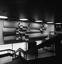 The relief Vuorovaikutus ("Interaction") by Heikki Häiväoja at the main lobby of the building.