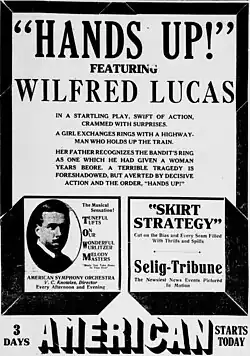 Hands Up! is a 1917 American silent Western film directed by Tod Browning.[1] This was Colleen Moore's last film for Triangle Film Company/Fine Arts Film Company. D. W. Griffith had withdrawn from the Triangle arrangement and taken many performers and staff, who were under contract specifically with Fine Arts (D. W. Griffith) rather than Triangle. Moore's contract was with Fine Arts. However Griffith had gone to Europe where he made Hearts of the World.