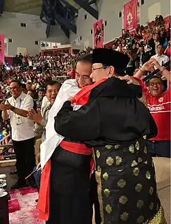 - ^ "Kicking down divisiveness: Jokowi and Prabowo share sweet group hug with pencak silat champion". coconuts.co. 30 August 2018. Retrieved 15 November 2018.