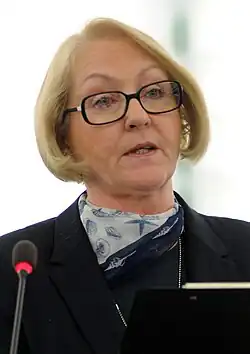 She was made head of the private office of Lech Kaczyński, then a member of the Polish Parliament and currently the President of the Republic of Poland, from 2001 to 2002.[2] She then managed the private office of Anna Fotyga, a Member of the European Parliament, in 2004 and 2005.[3] She is a member of both the Law and Justice Party National Bureau and Political Council and the Pomerania Voivodship Bureau.[4] In 1980 she was a member of Solidarność, an independent self-governing trade union.