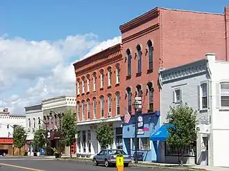 The Hanover Square Historic District is a downtown business district in Horseheads, New York.[2] Most of the buildings in the district were built between 1862 and 1882 in the Romanesque Revival style. The homogeneity of the district is owed to the fact that a fire levelled the town in 1862, allowing for redevelopment in this manner. The brick buildings, with their decorative corbelling, are remarkably intact.
