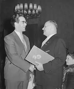 Walter Buchheim (right) presents Steinman the 1960 literature prize of the FDGB for his novel Die größere Liebe.