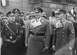 ![]() Hans Friedrichs (right), with Hermann Göring (centre), and Wilhelm Kube (left) at Friedrichs' inauguration as mayor of Potsdam. March 10, 1934 | |