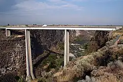 The Hansen Bridge is a 350-foot (110 m) high concrete deck girder bridge that carries Idaho State Highway 50 over the Snake River Canyon near Twin Falls, Idaho. The bridge spans the border of Jerome and Twin Falls Counties.