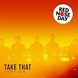 "Happy Now" is a song by English pop group Take That from their sixth studio album, Progress. The song features Gary Barlow and Robbie Williams performing lead vocals. The song was released as the third single from the album, mainly to promote the group's Comic Relief sketch, "Fake That".
