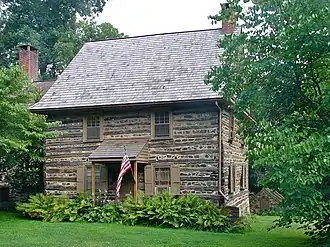 The Harlan Log House, also known as "The Log House," was built about 1715 by Joshua Harlan, is a well-preserved example of an English-style log cabin near Kennett Square, in Kennett Township, Chester County, Pennsylvania, United States. It is about a half mile west of the hamlet of Fairville. Joshua Harlan was the son of George Harlan, who arrived in Pennsylvania in 1687. Joshua was born in 1696 and was the cousin of the George Harlan, who built the Harlan House, about 12 miles north about 1724. Both houses are listed in the National Register of Historic Places.