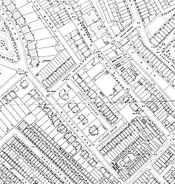 Harley Gardens (centre) on an 1890s Ordnance Survey map