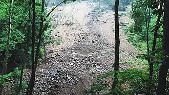 A photo showing the damage caused by road work in Harmankaya Nature Park.