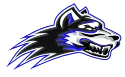 The school mascot is the Wolf, and their colors are blue and white.