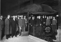Officers and employees of Harris, Forbes in Grand Central Terminal on their way to celebrate the opening of the firm's new offices in 1911
