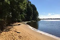 The park is named after Richard Hartshorne, who acquired the land from the Lenape for thirteen shillings after sailing to the Highland in 1674.[1][2] Rocky Point, the 224-acre (0.91 km2) easternmost section of the park, contains a World War Two-era Coast Artillery site known as Battery Lewis on the former Highlands Military Reservation (also called Navesink Military Reservation). Later, the Highlands Air Force Station, a long-range air defense radar installation and the Highlands Army Air Defense Site (HAADS) were constructed here. The Air Force closed its installation in 1966. The Army continued to operate HAADS through 1974 to support Nike missile batteries throughout the region, including some which were later revealed by historians at nearby Sandy Hook recreation area to carry nuclear warheads.