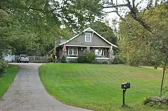 The Hartwell House is a historic house in Reading, Massachusetts. The 1+12-story wood-frame house was built in 1918 for George Hartwell, an engineer. The most prominent feature of this Craftsman/Bungalow style house is its stonework: the front porch is supported by tapering piers of fieldstone, and the full length of its chimney is similarly composed. There is a decorative woodwork trellis at the peak of the front gable.[2]