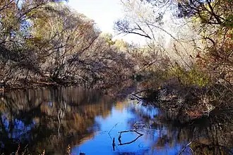 The Hassayampa River (Yavapai: Hasaya:mvo or ʼHasayamcho:[1]) is an intermittent river, the headwaters of which are just south of Prescott, Arizona, and flows mostly south towards Wickenburg, entering the Gila River near Hassayampa. Although the river has only subsurface flow for much of the year, it has significant perennial flows above ground within the Hassayampa River Canyon Wilderness and the Nature Conservancy's Hassayampa River Preserve, near Wickenburg.[2] The river is about 113 miles (182 km) long,[3] with a watershed of 1,410 square miles (3,700 km2),[4] most of it desert.