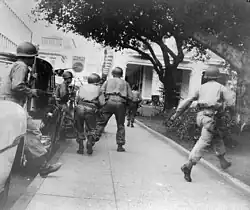 ![]() Armed DR militants advancing through the streets during the attack | |||