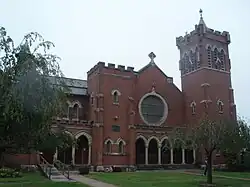 • Central Presbyterian Church, 64 New Main Street at intersection with Hudson Avenue, was founded in 1846 and moved to its present church in 1909, which was built with donated Haverstraw brick and now-scarce American Chestnut wood. The 13 stained-glass windows in the main sanctuary were designed by Louis Comfort Tiffany.