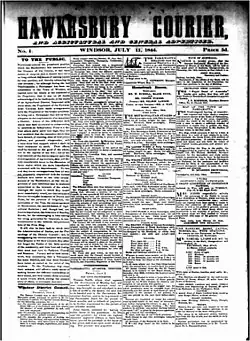 The Hawkesbury Courier commenced on the 11 July 1844 and followed a similar format to the defunct Windsor Express and Richmond Advertiser with four pages and cost five pence per issue.[3] It was printed and published by Geoffrey Amos Eagar in his premises located in Bridge Street and then later in George Street, Windsor.[3] Eager had also published the Windsor Express and Richmond Advertiser between 1843 and 1844.[3] Statham and Forster were the proprietors of the newspaper and also owned the Sydney-based The Australian newspaper which functioned between 1824 and 1848.[3] This is believed to be the first newspaper chain to operate in Australia.[3]